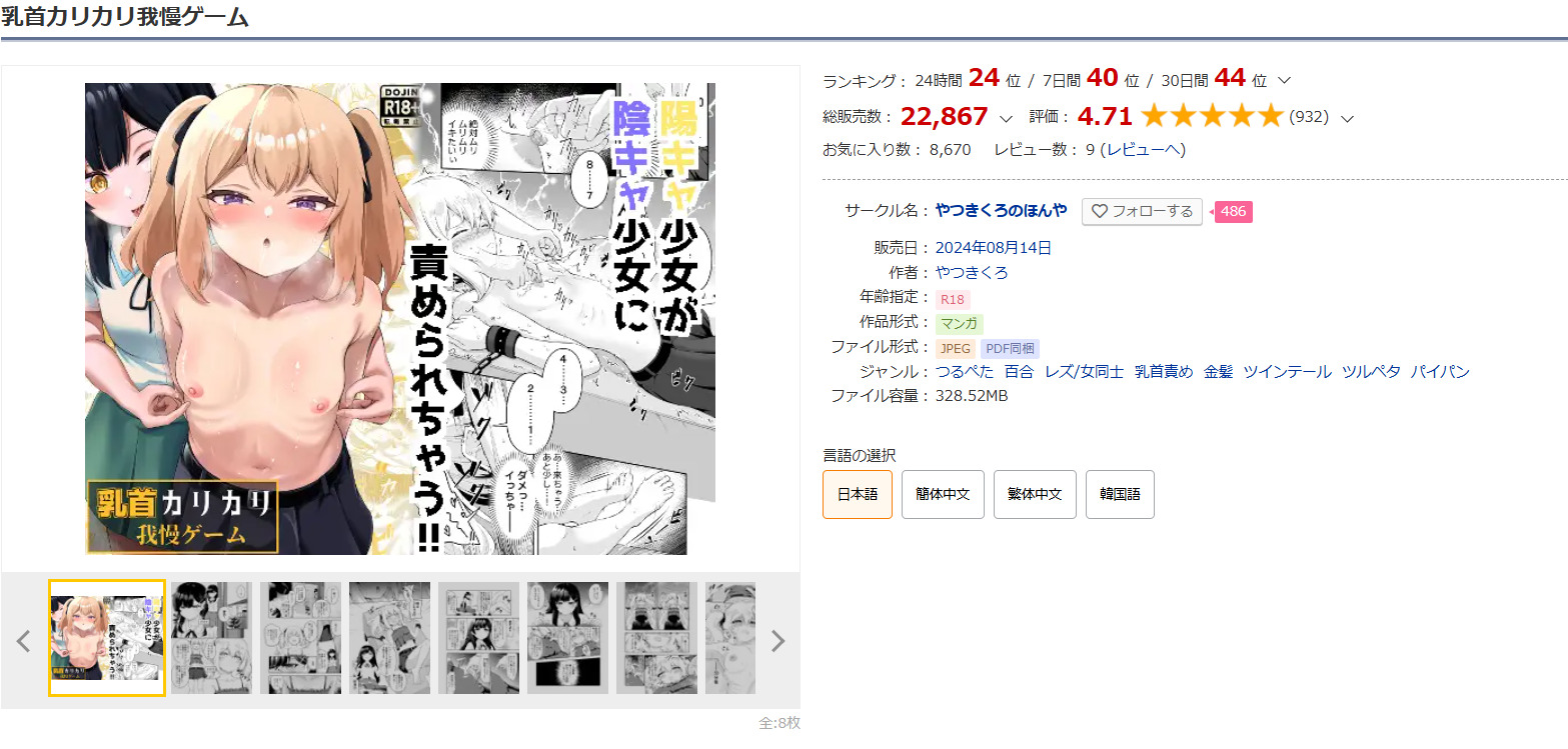 rawやhitomiは利用は法律違反行為って知っている?乳首カリカリ我慢ゲームはDLsite!